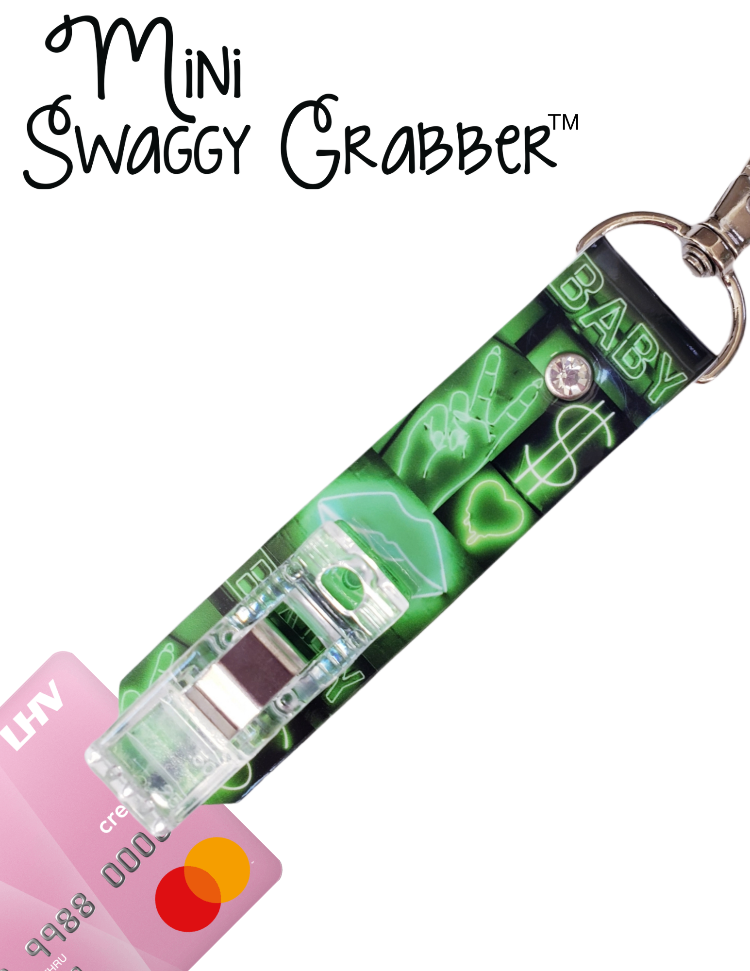 Never Struggle at the Gas Pump or ATM again! The Original Mini Swaggy Grabber will keep you cute and stylish all with a compact size perfect for even the smallest purse or keychain. Super strong grip to grab any card!