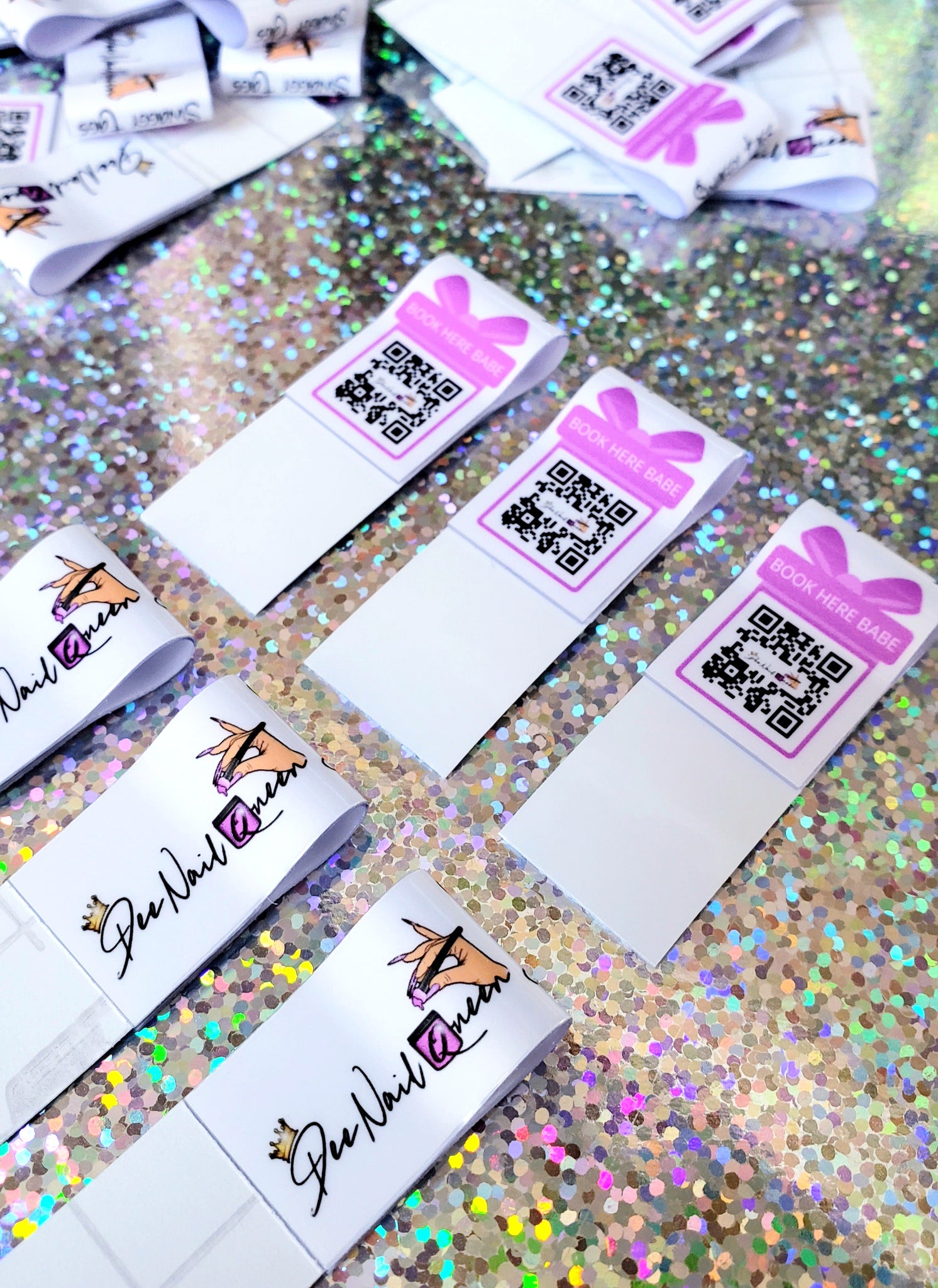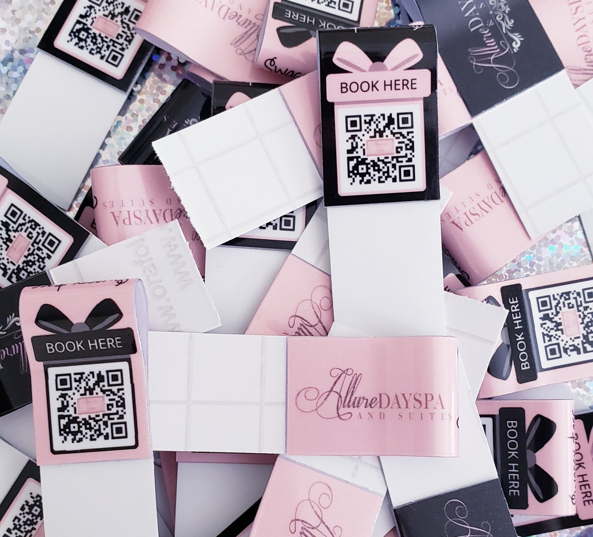 3) Stock Colors on the Front (Butterflies, Shoes, Flowers etc) and your Logo or QR CODE or Printed Info on back. Visit the PICK YOUR OWN section to view the Numbers and type those numbers in the box at checkout.